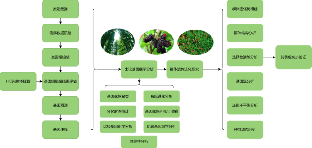 林木是木本植物的总称,包含乔木、灌木和木质藤本之分,林木主要是种子植物,中国约有8000种林木。分为榕树、杨树、柳树、柏树、松树等。林木的生长周期长,构建家系群体耗时,难度较大,但自然种群居多,所以针对林木类基因组主要采用群体进化及转录组等手段进行相应生物学问题的研究。近年来,高通量技术极大地推动了植物领域的研究进程,基因组、转录组、蛋白组和代谢组等多个层面的海量数据,能够进一步帮助我们更为全面、系统地解析复杂的生物变化与调控过程。随着质谱技术的快速发展以及蛋白质组学、代谢组学分析能力不断攀升,能为植物生物过程调控机制研究的大数据分析提供重要分子功能与表型信息。同时组学技术也帮助我们更加深入全面地探索调控植物生长过程中的奥秘,具有巨大的应用价值和开发潜力。目前,多组学技术已被广泛应用于生长发育、胁迫应答机制以及遗传育种等研究方向,成为助力科研的利器。···
