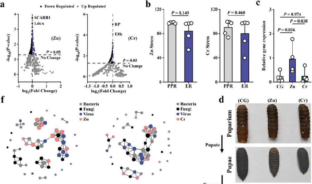 该研究结合16S rRNA测序与宏基因组学技术,系统解析了黑水虻幼虫(BSFL)在锌(Zn)和铬(Cr)胁迫下的重金属转化机制,发现BSFL肠道中富集的Proteobacteria(如Providencia属)通过上调金属调控蛋白基因(如ZnuCBA介导Zn摄取、chrA介导Cr外排)并激活柠檬酸循环相关通路(MltE、CitT、SLT),协同实现Zn/Cr的高效吸附与Cr(VI)向低毒Cr(III)的还原;宏基因组功能注释(基于KEGG、COG、CARD、VFDB等数据库)进一步揭示了代谢通路重编程与抗性基因表达的分子基础,证实BSFL能在维持稳定肠道微生物群落的同时完成生命周期,并将重金属转化为低生物可利用或稳定形态,从而为重金属污染污泥的绿色生物修复与资源化提供了多组学支撑的新策略。···
